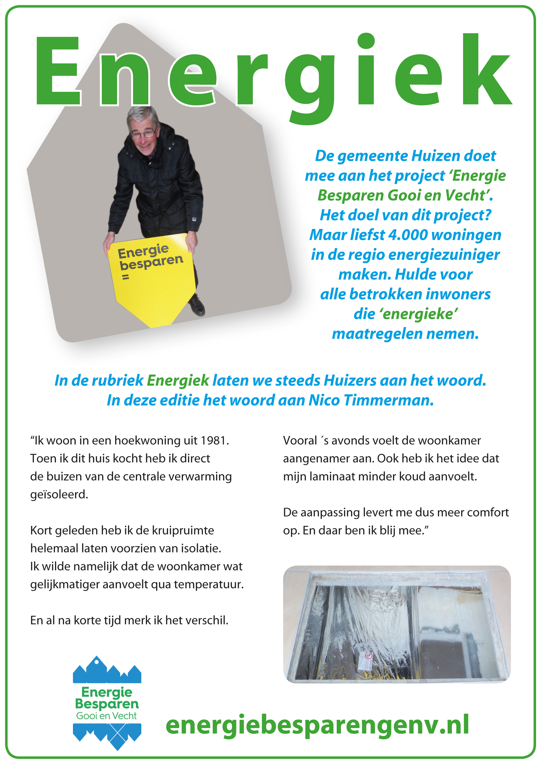 Veel inwoners in de regio Gooi en Vecht staan open voor het besparen van energie. In de rubriek Energiek komt steeds een inwoner van Huizen aan het woord.