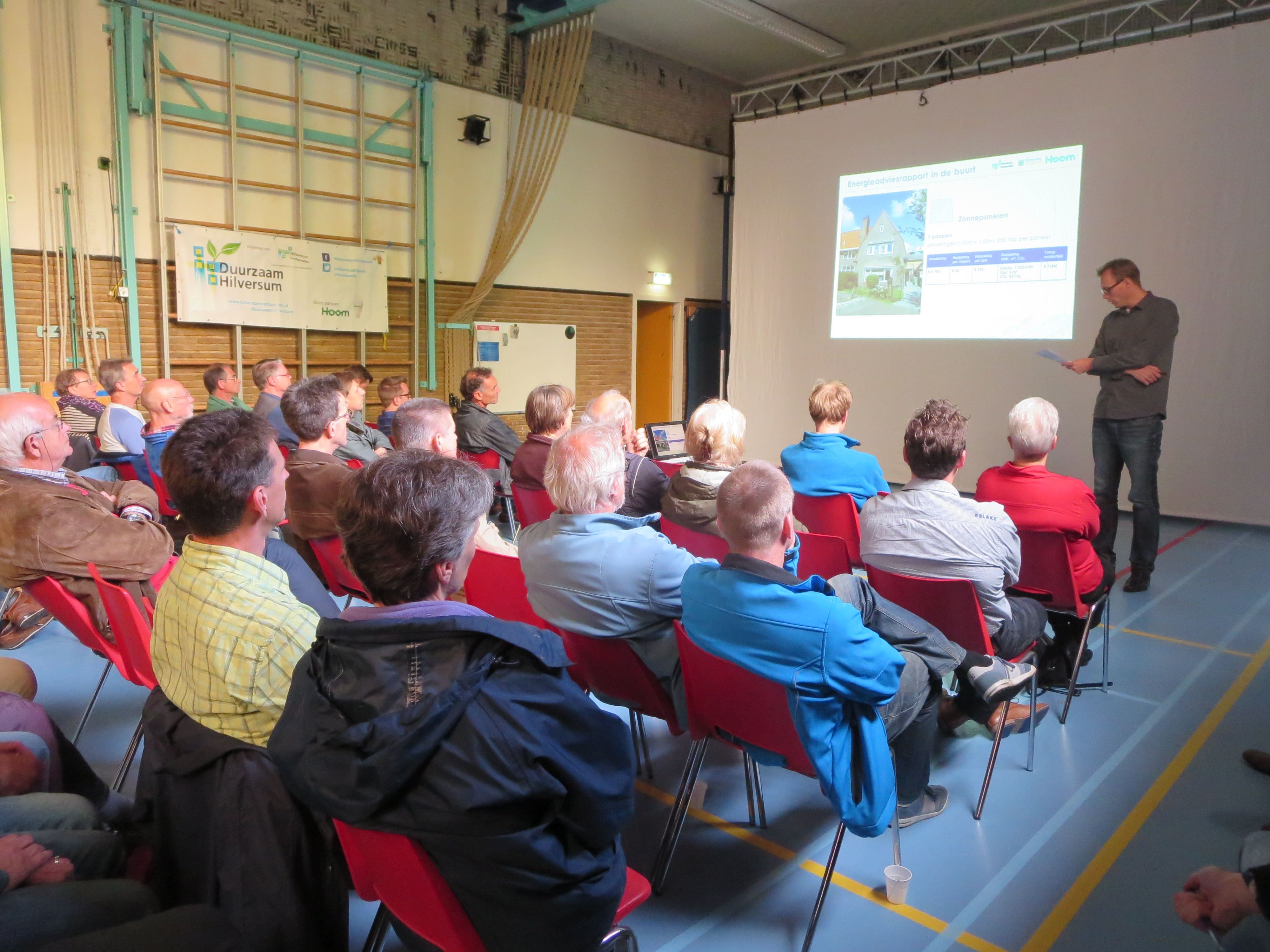 Op de avond zijn de mogelijkheden voor Hilversum-Oost in het gebied tussen de J. Gerardtsweg, Jan van der Heydenstraat, Minckelerstraat en de Zuiderheide aan de hand van twee voorbeeldadviezen voor woningen uit de buurttoegelicht. Alle maatregelen werden uitvoerig uitgelegd en de zaal kreeg de ruimte om vragen te stellen over de maatregelen en wat dat betekent voor hun eigen huis. De bewoners stelden veel vragen, vroegen door totdat ze het echt begrepen. Robert Tersmette, specialist van Hoom, kon met zijn bouwkundige achtergrond alle vragen beantwoorden. Ook deelden de bewoners ervaringen die sommigen van hun al hadden. Van loszittende isolatiebolletjes in de spouw tot eigen ervaringen met zonnepanelen.